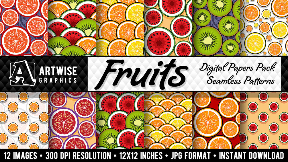 Fruit Slices Digital Paper Graphics Seamless Patterns